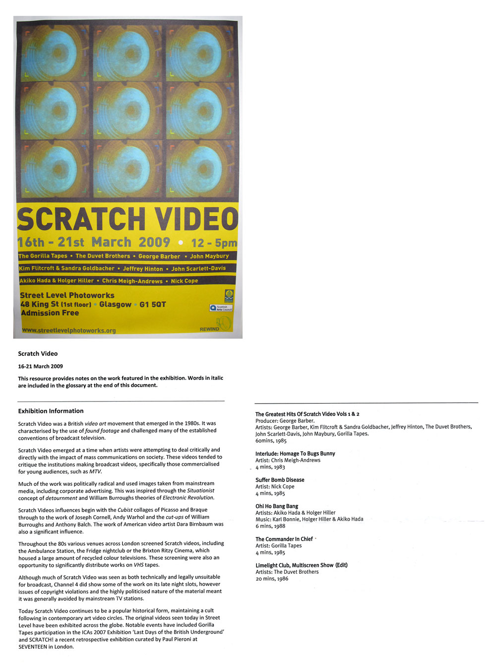 Scratch Video installation, Glasgow, 2009.