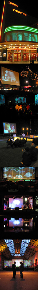 This followed projection projects in previous years in Scarborough town centre for the annual Festival of Light, including the Digital Store and the Digital Theatre – illuminating an unused shopfront, and the iconic local theatre with video projections. During this time I also worked in partnership, both personally and in my professional capacity at the University of Hull, with Create to facilitate, support and co-produce a host of public arts and digital projection projects including the first outdoor Environmental Film Festival in England, various outdoor cinema events, multimedia club nights, artists installations and shows by VJ pioneers Hexstatic, and the Peace Home music festival.