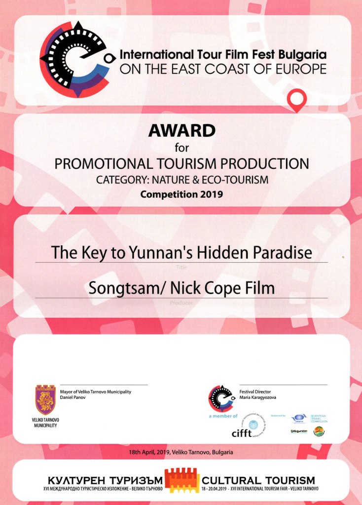 Winner: Best Nature and Eco-Tourism Documentary – The Key to Yunnan’s Hidden Paradise, International Tourism Film Festival Bulgaria, 2019.